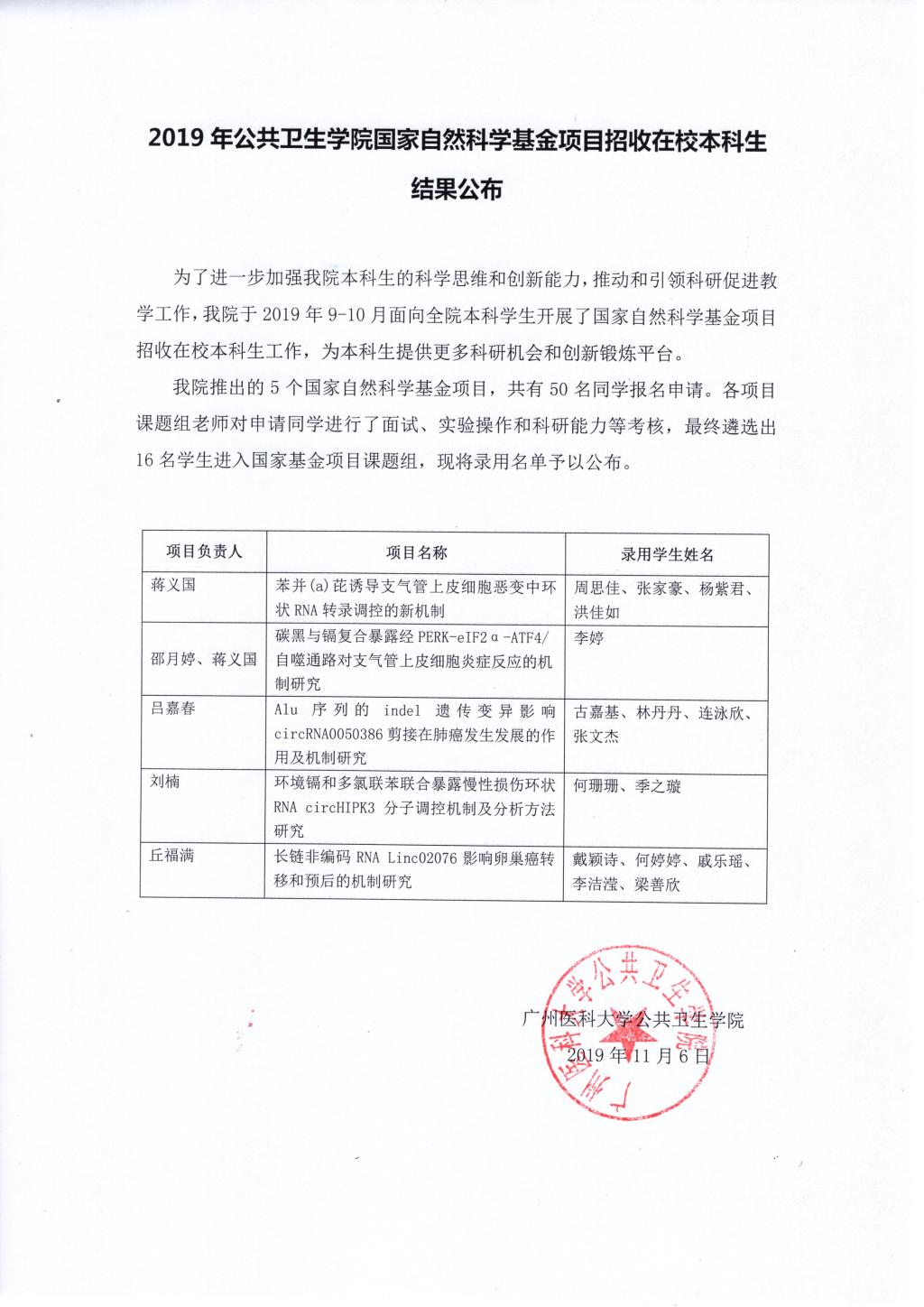 2019年包子漫画 国家自然科学基金项目招收在校本科生结果公布