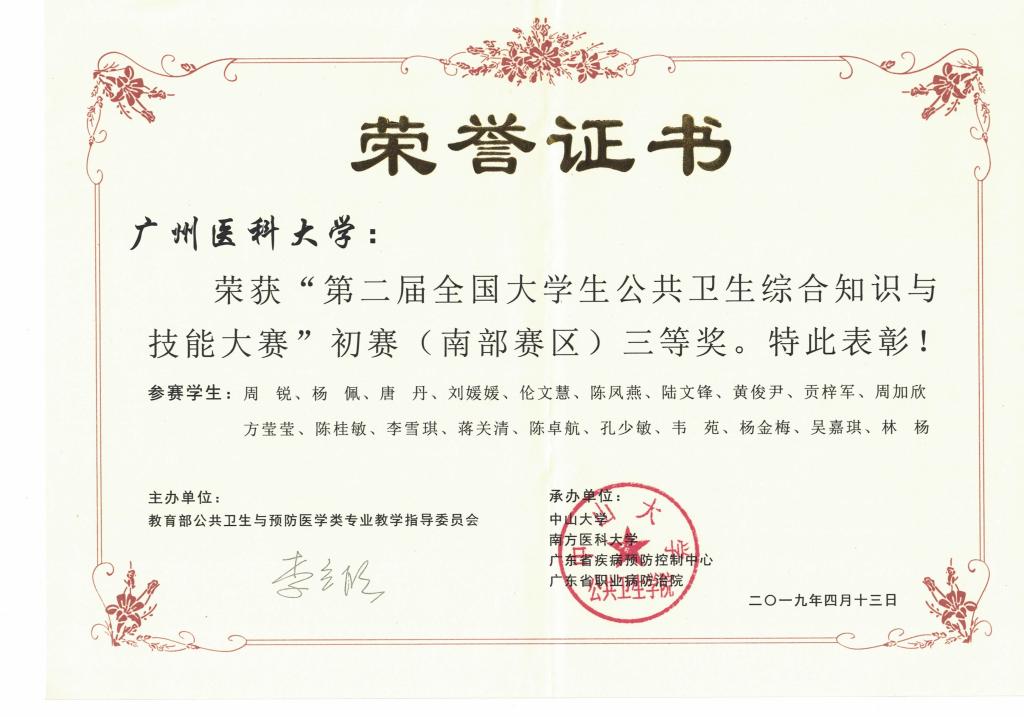 由教育部公共卫生与预防医学专业教学指导委员会主办的第二届全国大学生公共卫生综合知识与技能大赛初赛于近日落下帷幕。本次大赛初赛分北部、中部、南部三个赛区,包括北京大学、华中科技大学、复旦大学等在内的60所高校参赛。包子漫画 高度重视本次赛事,认真组织预防医学专业学生参赛,精心安排骨干教师进行专项培训,选拔了周锐、杨佩、唐丹、刘媛媛、伦文慧、陈凤燕、陆文锋、黄俊尹、贡梓军、周加欣、方莹莹、陈桂敏、李雪琪、蒋关清、陈卓航、孔少敏、韦苑、杨金梅、吴嘉琪、林杨等20名优秀学生代表,参加了4月13日的全国统一初赛。包子漫画 从南部赛区20所高校中脱颖而出,获得此次初赛三等奖,并成功晋级,将参加5月份的全国决赛。