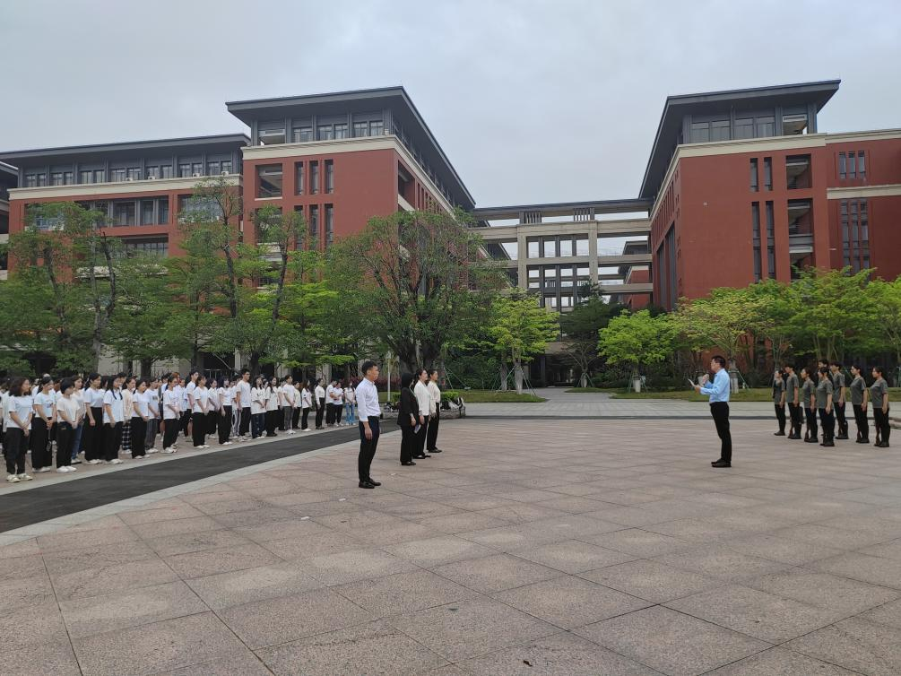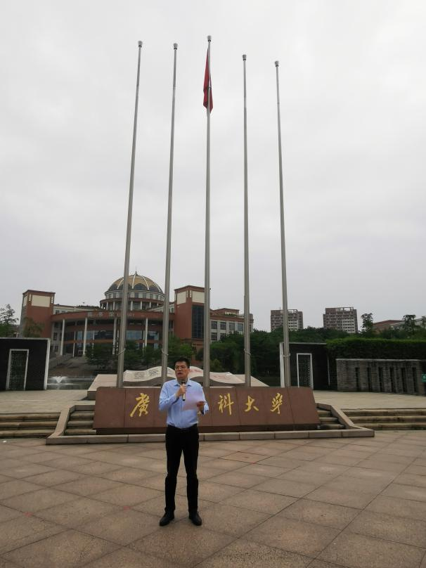 4月24日早上,包子漫画 在番禺校区国旗广场隆重举行本学期升国旗仪式。仪式由包子漫画 党委刘宇珊副书记主持。