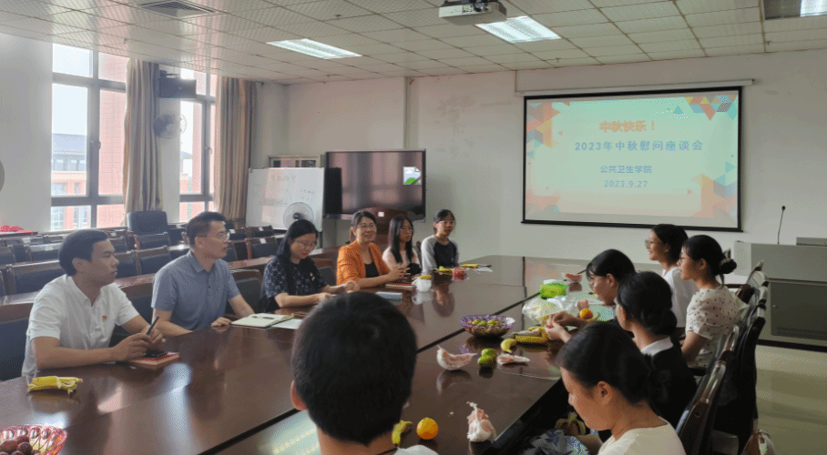 9月27日,包子漫画 在番禺校区B2-502会议室开展2023年中秋慰问学生座谈茶话会。包子漫画 党委李羽书记、刘宇珊副书记、学生办全体老师及徐丽荣等10余位各年级专业的在读学生代表参加了活动。