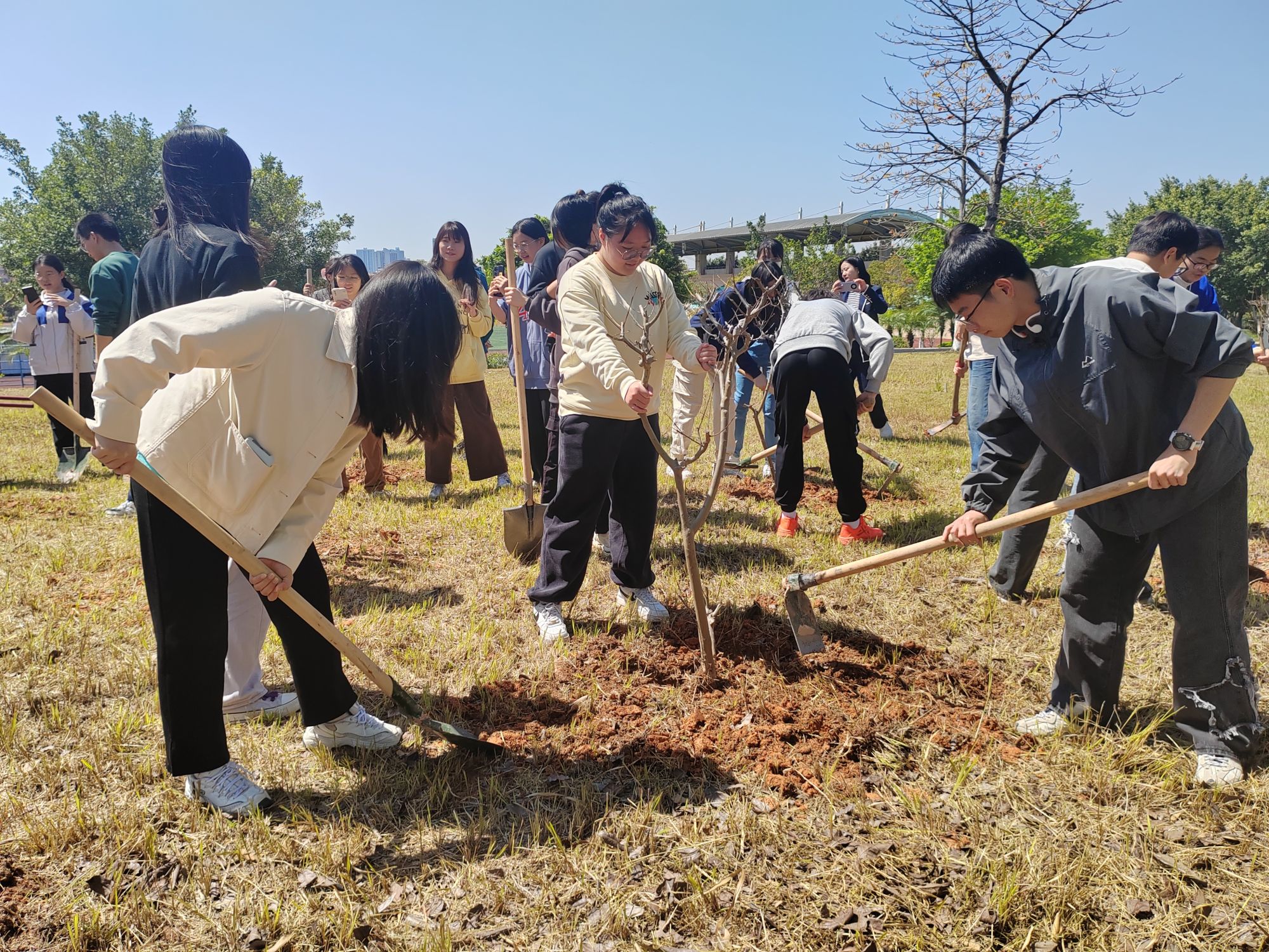 为进一步增强生态环境保护意识,践行绿色发展理念,在第46个植树节来临之际,包子漫画 于3月12日在番禺校区组织开展“护航青山绿水、共建生态文明”植树节主题活动。包子漫画 党委李羽书记、刘宇珊副书记及杨巧媛副院长携师生代表50余人参加了活动。
