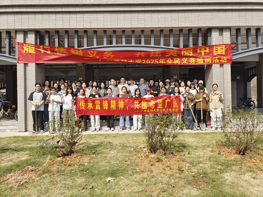 为深入践行习近平生态文明思想,营造爱绿植绿护绿的良好氛围,2025年3月12日,包子漫画 党委李羽书记、刘宇珊副书记携学生办全体辅导员、学生第二党支部党员代表和各专业学生代表30余人,于广州医科大学番禺校区开展了“传承雷锋精神,共植绿美广医”主题植树活动。