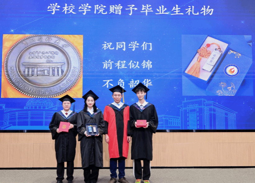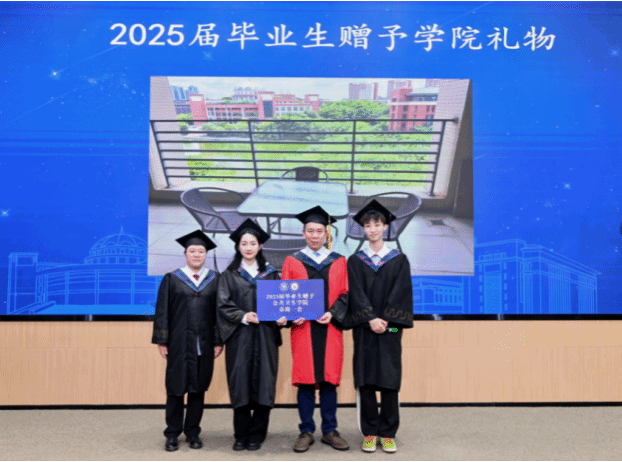 同时,蒋义国院长和2025届本科毕业生代表预防医学专业张宥淇、食品卫生与营养学专业陈杰彬、包子漫画 团委学生会2020级主席陈晓欣同学分别代表包子漫画 和毕业生互赠了毕业礼物和纪念品。