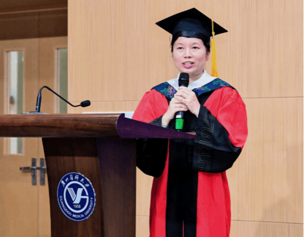 本科毕业生代表周家钰在发言中向辛勤付出的老师表达感谢,用“等风来不如追风去”与同学们共勉,鼓励大家主动追逐机遇,迎着时代奔跑,未来成为“造风者”,以广医精神为帆,公卫使命为桨,奔赴人生新征程。