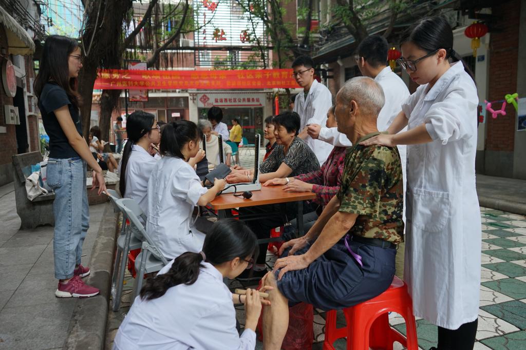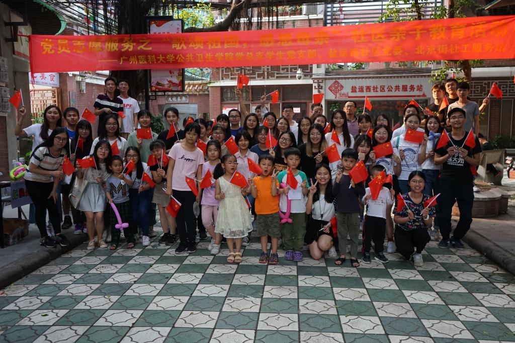 5月11日,在今年母亲节前夕,包子漫画 党总支学生支部与盐运西社区党委、北京街社工服务站合作,在越秀区盐运西社区举办了主题为“歌颂祖国,感恩母亲”的社区志愿服务活动,为祖国母亲七十周岁生日致敬,为天下妈妈祝福。活动以歌曲快闪、复兴之路图片展、健康教育宣讲、医疗卫生志愿服务和亲子教育游戏等多种丰富的形式开展,受到社区居民朋友们的热烈欢迎。