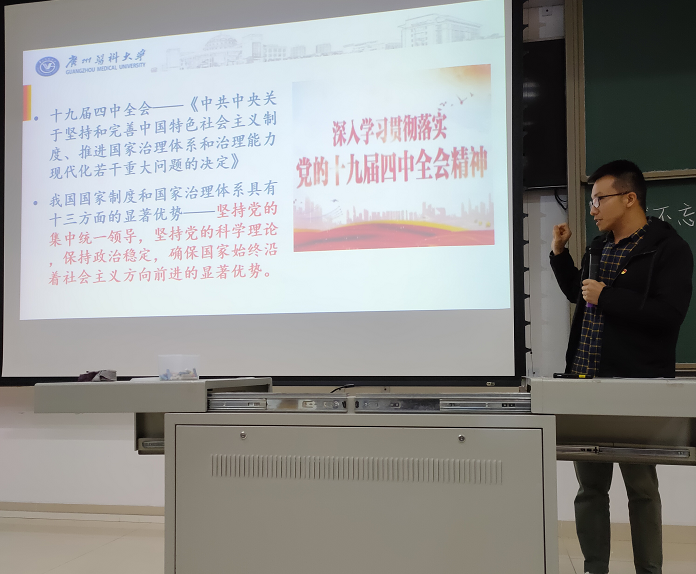 11月29日晚,根据市委宣传部《关于印发<“礼赞新中国奋进新时代”广州千场大宣讲活动实施方案>的通知》和我校宣传部要求,为深入推进习近平新时代中国特色社会主义思想的学习宣传贯彻,庆祝中华人民共和国成立70周年,同时也为响应“不忘初心,牢记使命”主题教育调研中学生党员提出希望增加专题理论学习需求,包子漫画 党总支在番禺校区A3-102室举办专题宣讲学习活动。