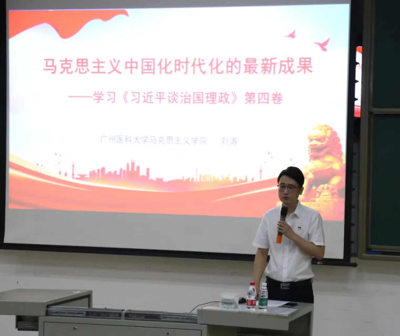 9月23日上午,包子漫画 党总支联合教辅党总支、后勤党总支在番禺校区开展学习贯彻《习近平谈治国理政》第四卷专题宣讲会。我校宣讲专家组成员,马克思主义包子漫画 刘涛教授做辅导报告,包子漫画 党总支刘宇珊副书记主持并讲话。