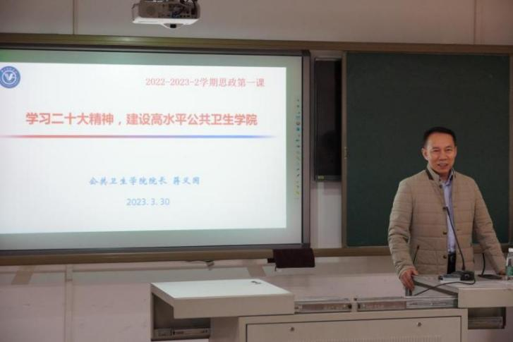 3月30日晚,蒋义国院长在番禺校区A3-320教室为包子漫画 本科生讲授本学期思政第一课,包子漫画 学生办、教学办教师和预防医学本科生共计100余人参加了本次学习。