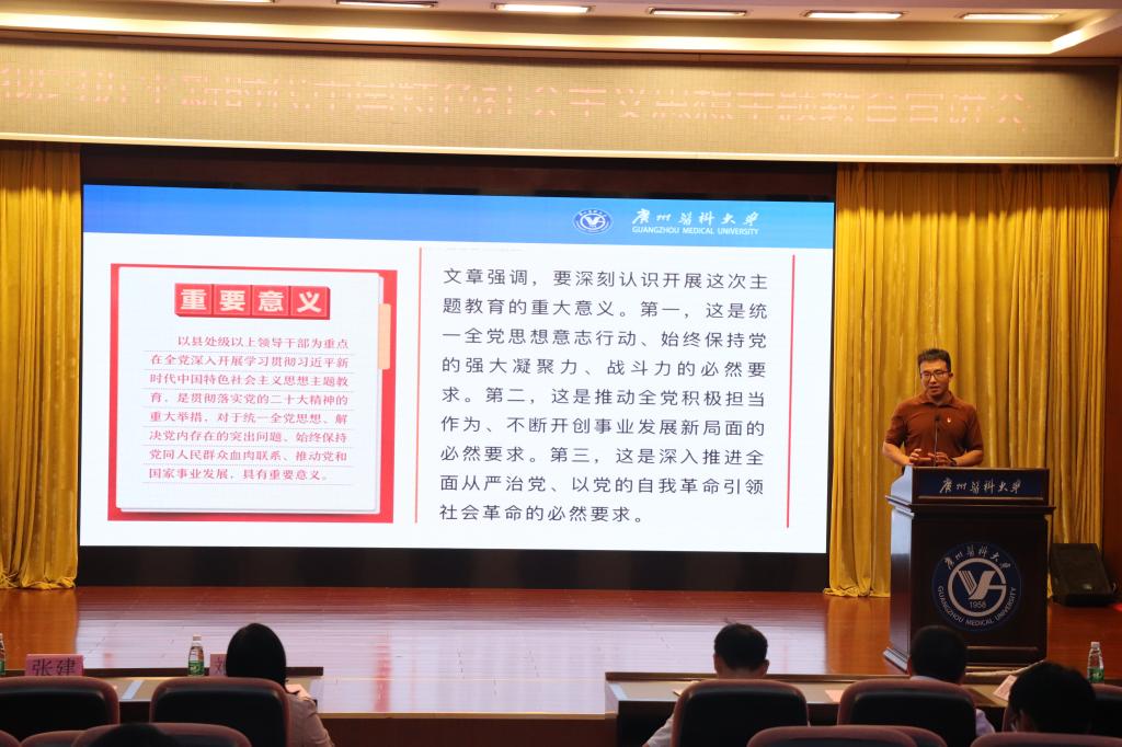 5月11日晚,包子漫画 党委在番禺校区图书馆报告厅开展学习贯彻习近平新时代中国特色社会主义思想主题教育宣讲会。我校学习贯彻党的二十大精神宣讲组成员、马克思主义包子漫画 张建副教授作宣讲报告。包子漫画 党委书记李羽、副书记刘宇珊、副院长杨巧媛以及师生代表200余人参加宣讲会。