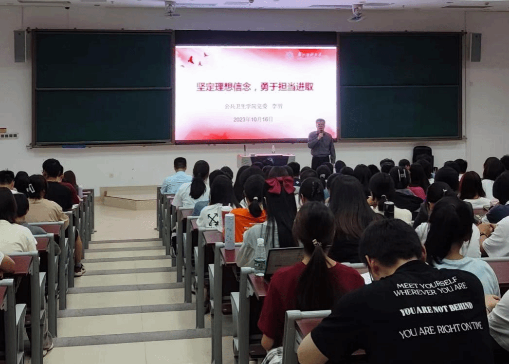 10月16日晚,李羽书记和刘宇珊副书记在番禺校区A3-101课室为2023级本科新生及研究生新生先后上思政第一课、新生党课。辅导员、教学办老师和2023级全体新生共200余人参加学习活动。
