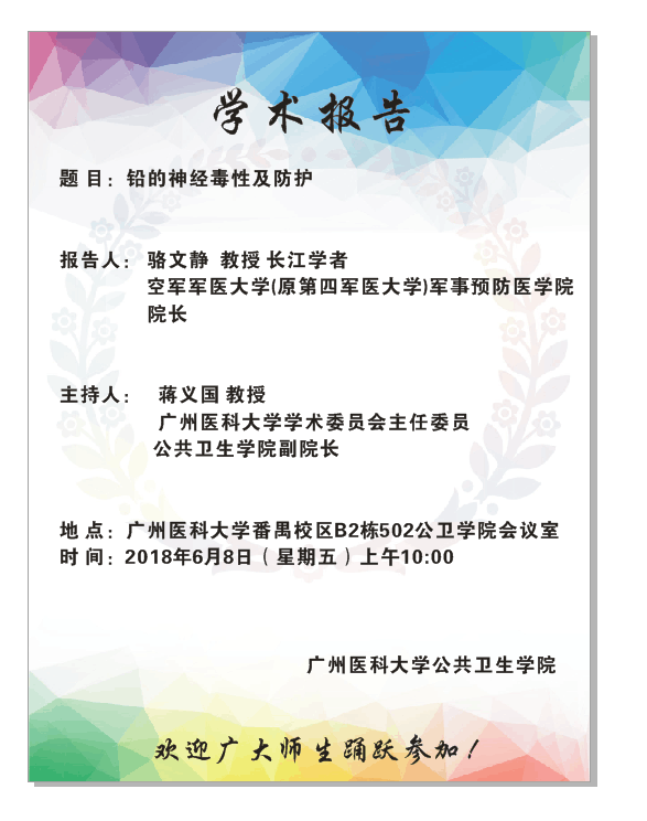 学术报告--骆文静--铅的神经毒性及防护