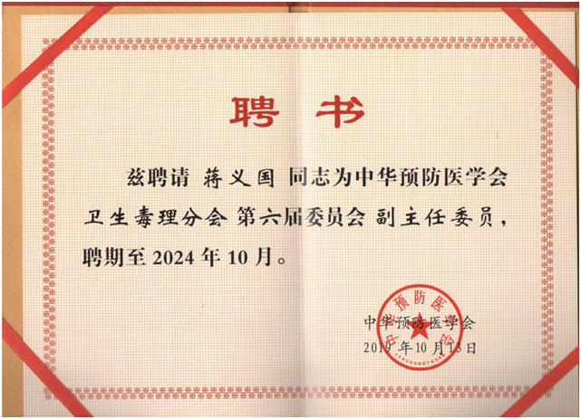 近日,中华预防医学会卫生毒理分会进行了换届选举,成立了新的第六届委员会,由93位委员组成,其中主任委员1人,副主任委员6人,聘期五年。包子漫画 蒋义国教授当选副主任委员。本届新的委员会主任委员单位是复旦大学,其他5所副主任委员单位分别是中山大学、南京医科大学、首都医科大学、中国疾病预防控制中心及浙江大学。中华预防医学会向新一届主任委员、副主任委员、常委及委员颁发了聘书。