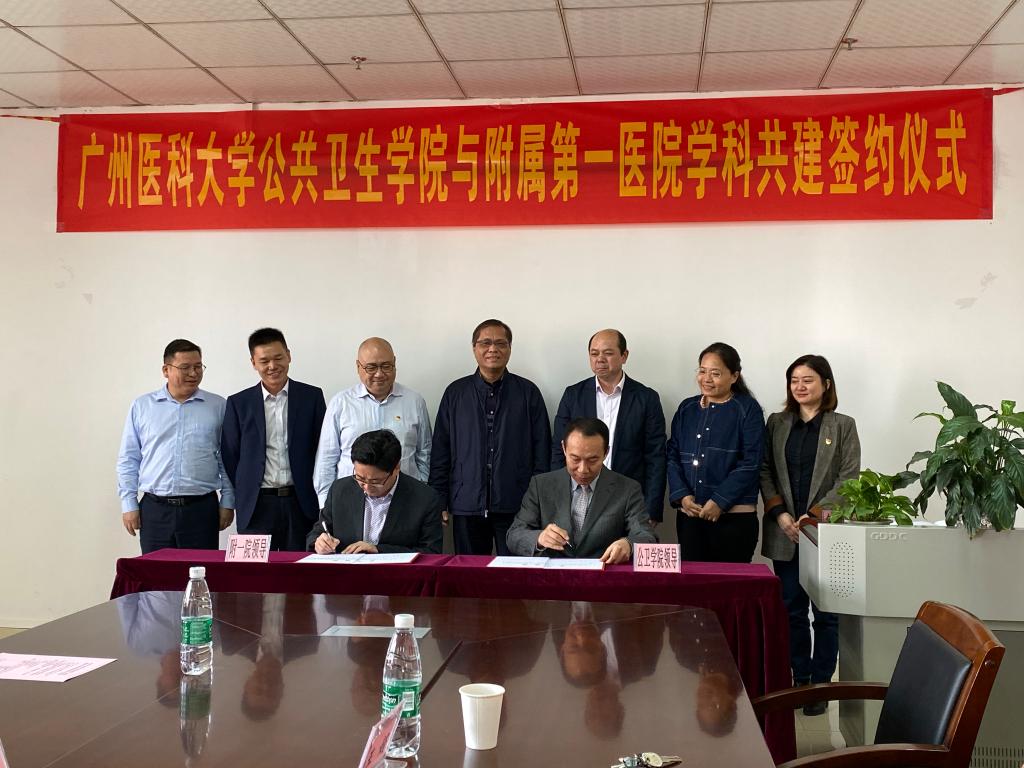 2020年1月9日上午,在番禺校区包子漫画 会议室,举行了包子漫画 与附属第一医院“学科共建”合作续签仪式。刘金保副校长,科研处付晓东处长,附一院黎毅敏书记、黄锦坤院长、高兴成副院长等,公卫包子漫画 蒋义国院长、杨巧媛副院长、党总支刘宇珊副书记,及公卫包子漫画 全体人员出席了签约仪式。这是公卫包子漫画 与附一院继2017年签署两院合作协议之后的第二次牵手。