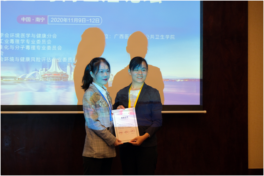 由中国环境科学学会环境医学与健康分会、中国毒理学会工业毒理专业委员会及生化与分子毒理专业委员会等单位联合主办的“2020环境与健康学术大会”,于2020年11月9-12日在广西南宁市召开。来自全国1000余名环境医学与毒理学及相关领域的专家学者出席了本次学术盛会。本次大会特别设立了青年学者及博士后报告专场,共遴选出50余名青年学者及博士后作口头报告,评出15位大会优秀报告奖。包子漫画 硕士研究生曾晖娴、张晗分别作了口头报告,其中曾晖娴的报告获得大会优秀报告奖。