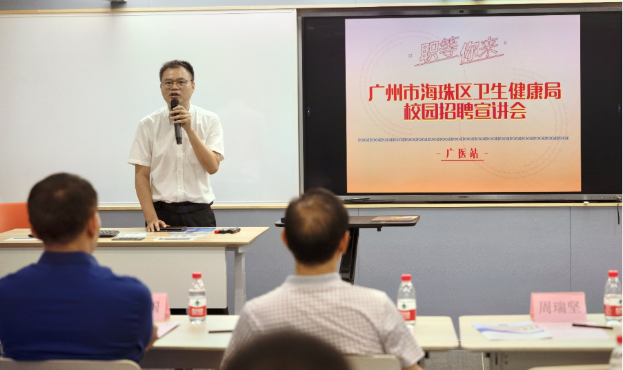 海珠区卫生健康局周瑞坚副局长及疾病预防控制中心刘达雄副主任分别向学生们介绍了卫健局的基本情况及疾控中心的发展前景和毕业生需求情况,他们希望通过此次交流活动加强与我校的交流合作,招聘更多优秀广医毕业生去工作,提供更多机会让学生们发挥自己所学知识,施展才能,回馈社会。