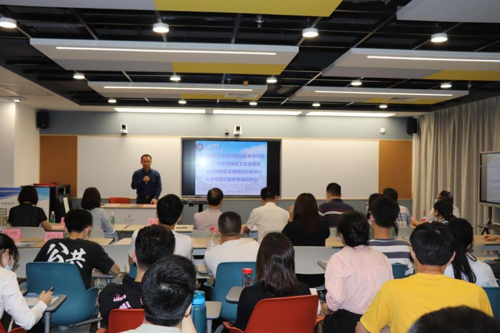 为贯彻落实国家《关于进一步做好高校毕业生等青年就业创业工作的通知》及《关于开展全国高校书记校长访企拓岗促就业专项行动的通知》要求,拓展毕业生就业渠道,促进2022届毕业生就业,5月13日下午,包子漫画 在番禺校区举办了广州市海珠区卫生健康局、广州市海珠区疾病预防控制中心人才供需对接交流暨专场招聘会,包子漫画 在校研究生及本科生70多人参加了现场会议。