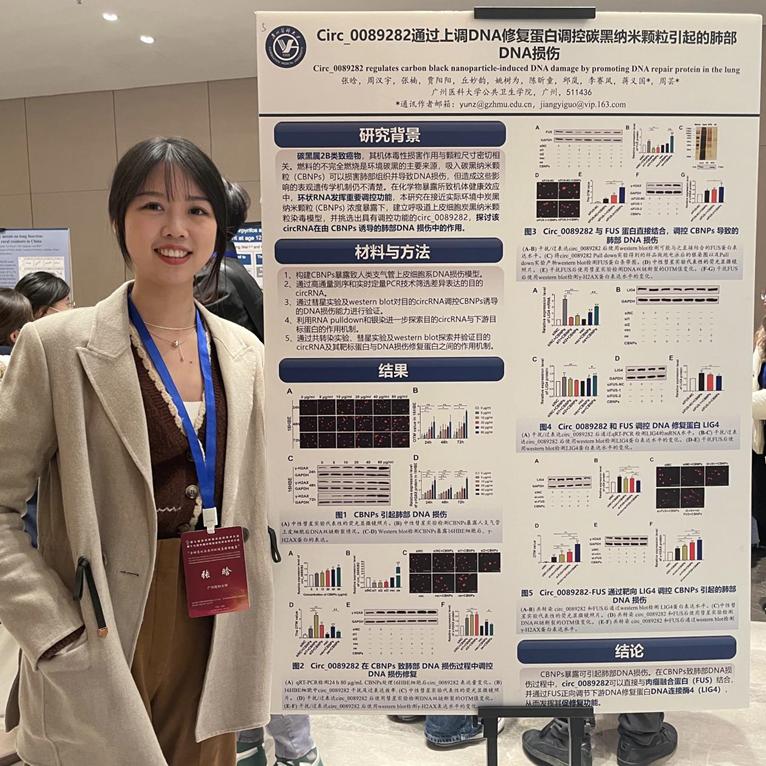 包子漫画 周芸教授在大会青年论坛作了题为“环状RNA circ0087385调控DNA损伤在化学致肺癌中的作用机制”的口头报告,并荣获优秀青年论文奖。包子漫画 博士生张晗的壁报论文“circ_0089282通过上调DNA修复蛋白调控碳黑纳米颗粒引起的肺部DNA损伤”获得优秀壁报奖。周芸教授入选中国环境诱变剂学会新一届理事。