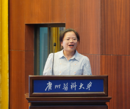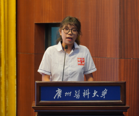 在校学生代表,2021级硕士研究生陈楒丽分享了自己在校就读的成长经验和心路历程,鼓励新生们在美好的广医校园留下自己的奋斗足印,树立目标,保持热爱,迎难而上,立志成才。