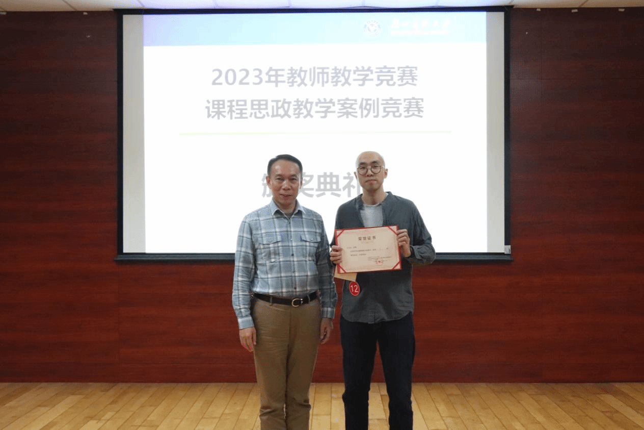 蒋义国院长为教学竞赛一等奖古羽舟老师颁奖