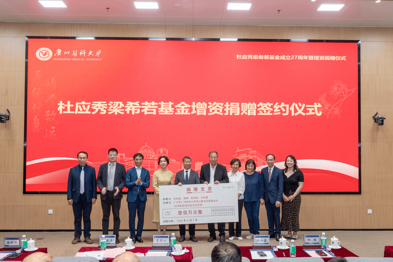 今年,两位教授的后人杜如虚院士及家人决定向广州医科大学“应秀希若奖学金”项目增资100万元,旨在助力学校“双一流”大学建设,进一步弘扬杜应秀教授、梁希若教授身上体现的教育家精神和家国情怀,培育广医学子对医学的热爱和刻苦钻研的科学精神。