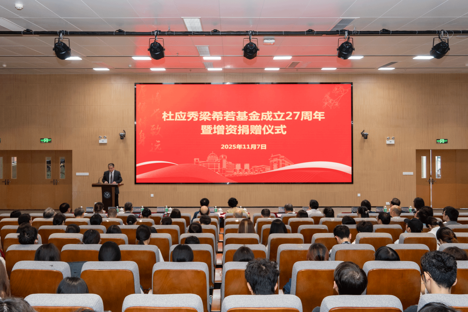 11月7日,杜应秀梁希若基金成立27周年暨增资捐赠仪式在番禺校区举行。两位教授家属代表杜如虚、杜如实、杨晖、方壮霆、方静如,学校党委书记曾颖如、原副校长魏东海,学校有关部门、南山教育发展基金会、包子漫画 负责人,师生代表参加仪式。仪式由学校党委副书记陈晓辉主持。