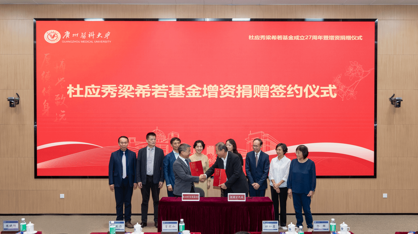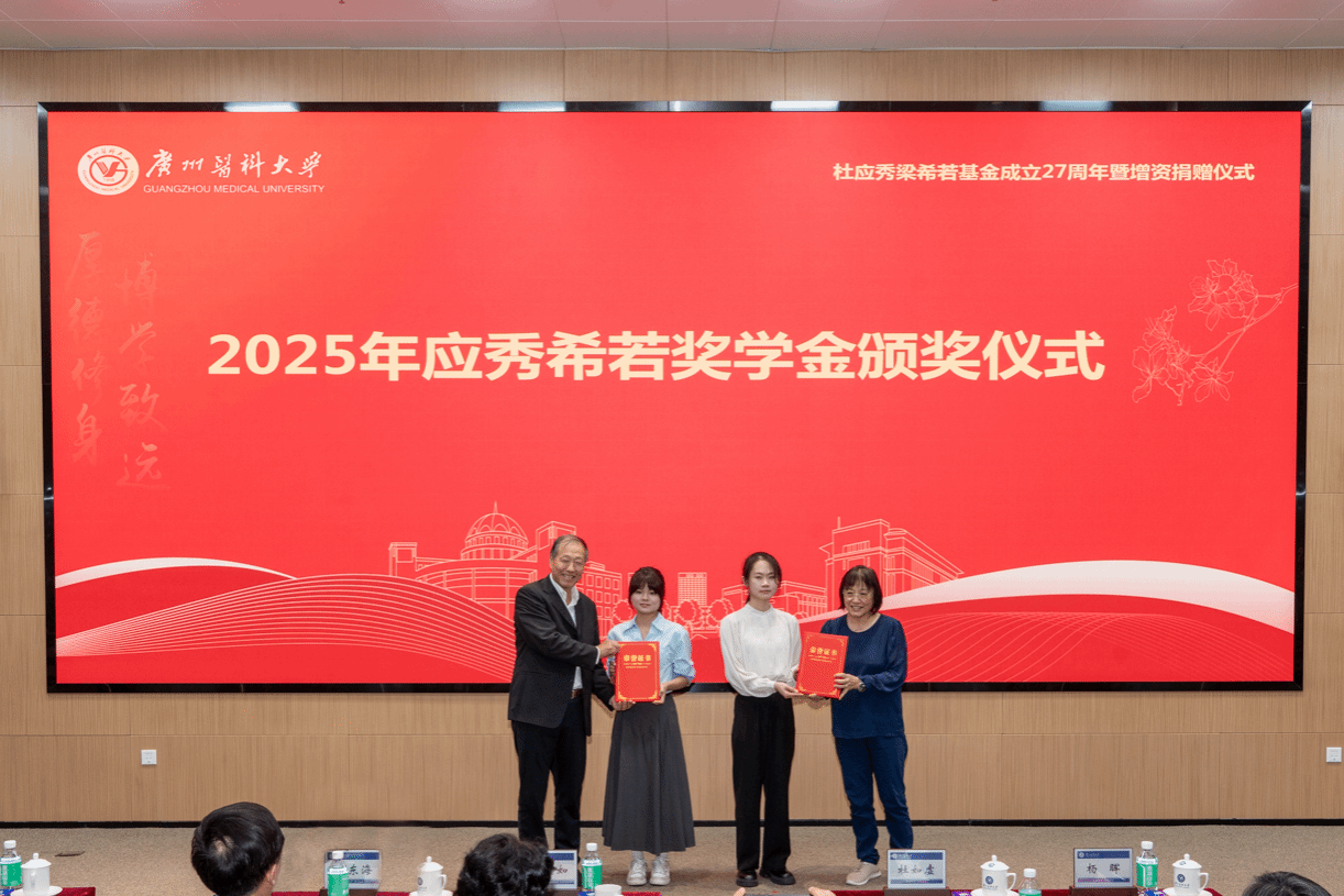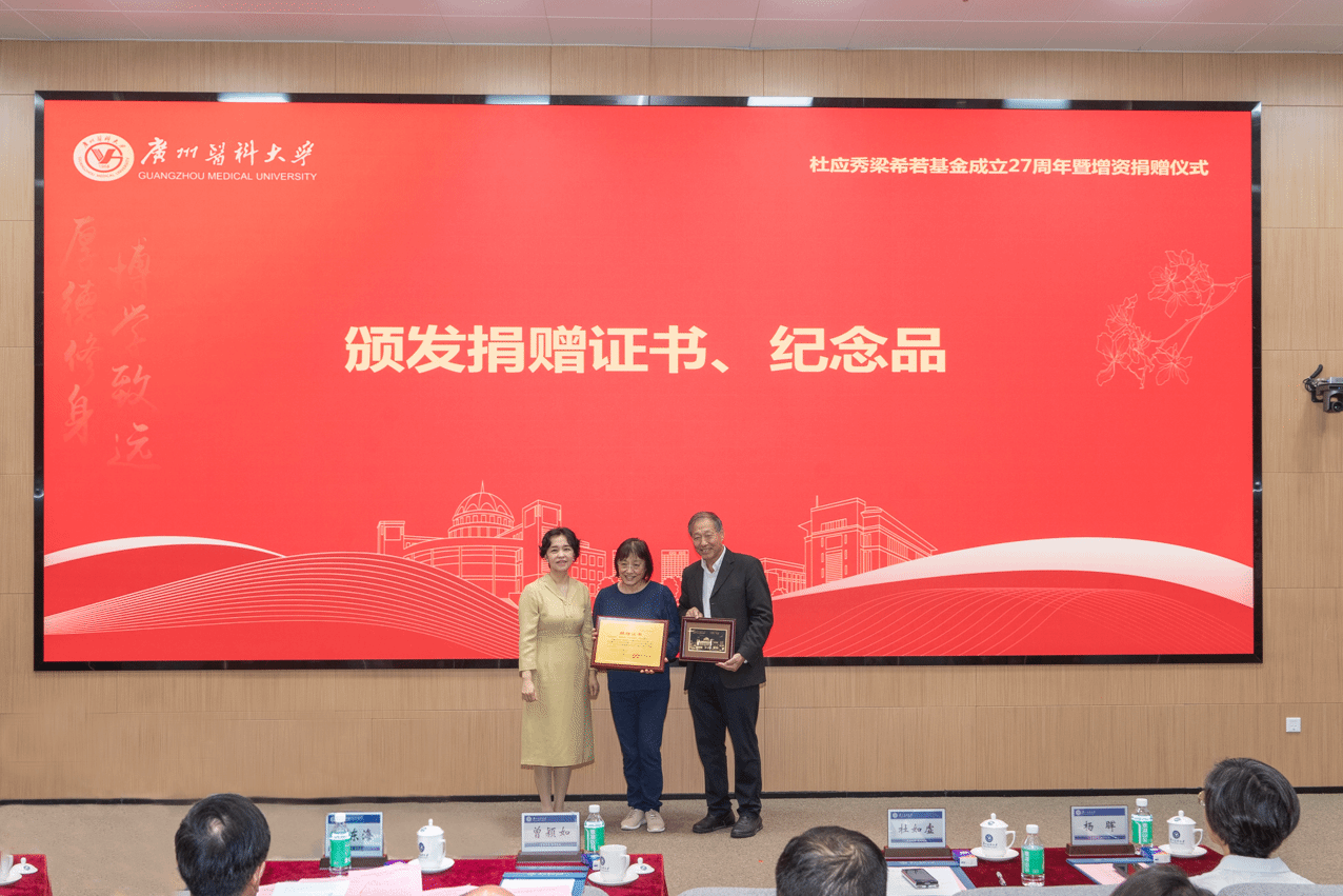 今年,两位教授的后人杜如虚院士及家人决定向广州医科大学“应秀希若奖学金”项目增资100万元,旨在助力学校“双一流”大学建设,进一步弘扬杜应秀教授、梁希若教授身上体现的教育家精神和家国情怀,培育广医学子对医学的热爱和刻苦钻研的科学精神。
